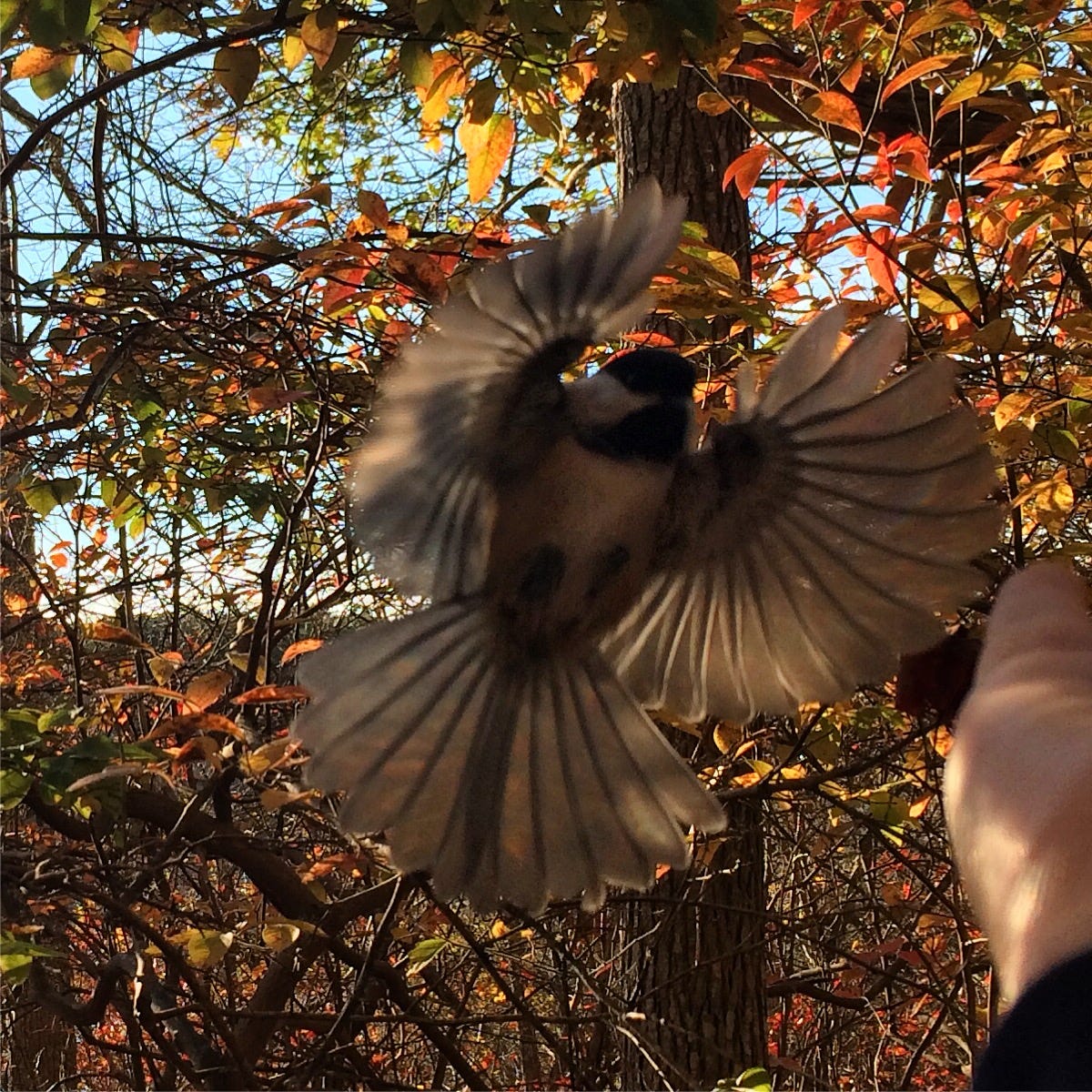 (a bird landing in my hand one November in the Beech Forest, Provincelands, MA)